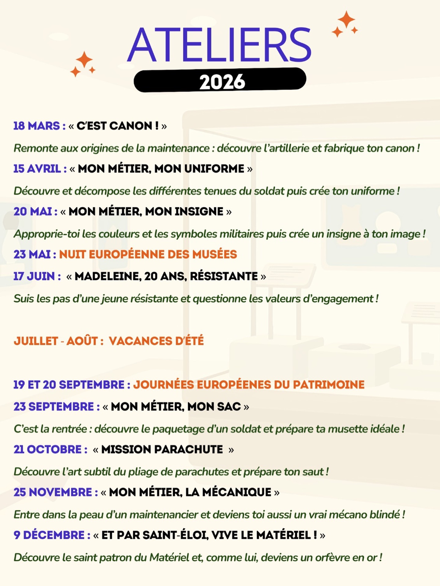 Un atelier créatif pour découvrir les symboles militaires et imaginer son propre insigne au Musée du Matériel et de la Maintenance.