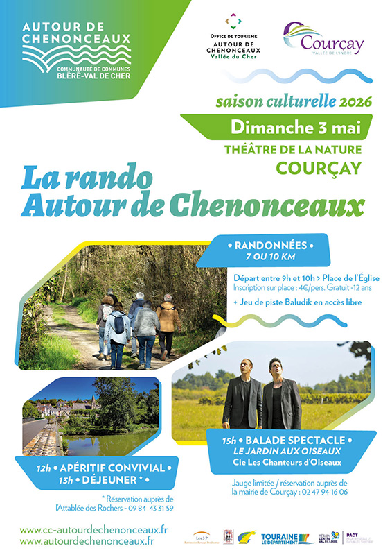 La rando Autour de Chenonceaux a lieu le dimanche 3 mai. Départ entre 9h et 10h place de l'Eglise à Courçay. 7 ou 10 km. Inscription sur place, 4€ par personne …