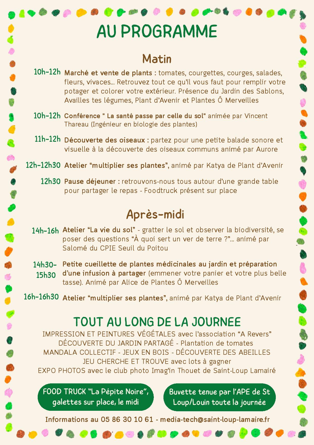 Rendez-vous de 10 h à 17 h, au Jardin Partagé à Saint-Loup-sur-Thouet. Marché et vente de plants de 10 h à 12 h, conférence "La santé passe par celle du sol", d…