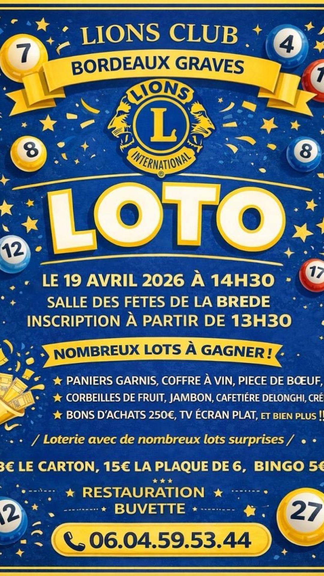 1er loto du Lions Club Bordeaux-Graves à LA BREDE.