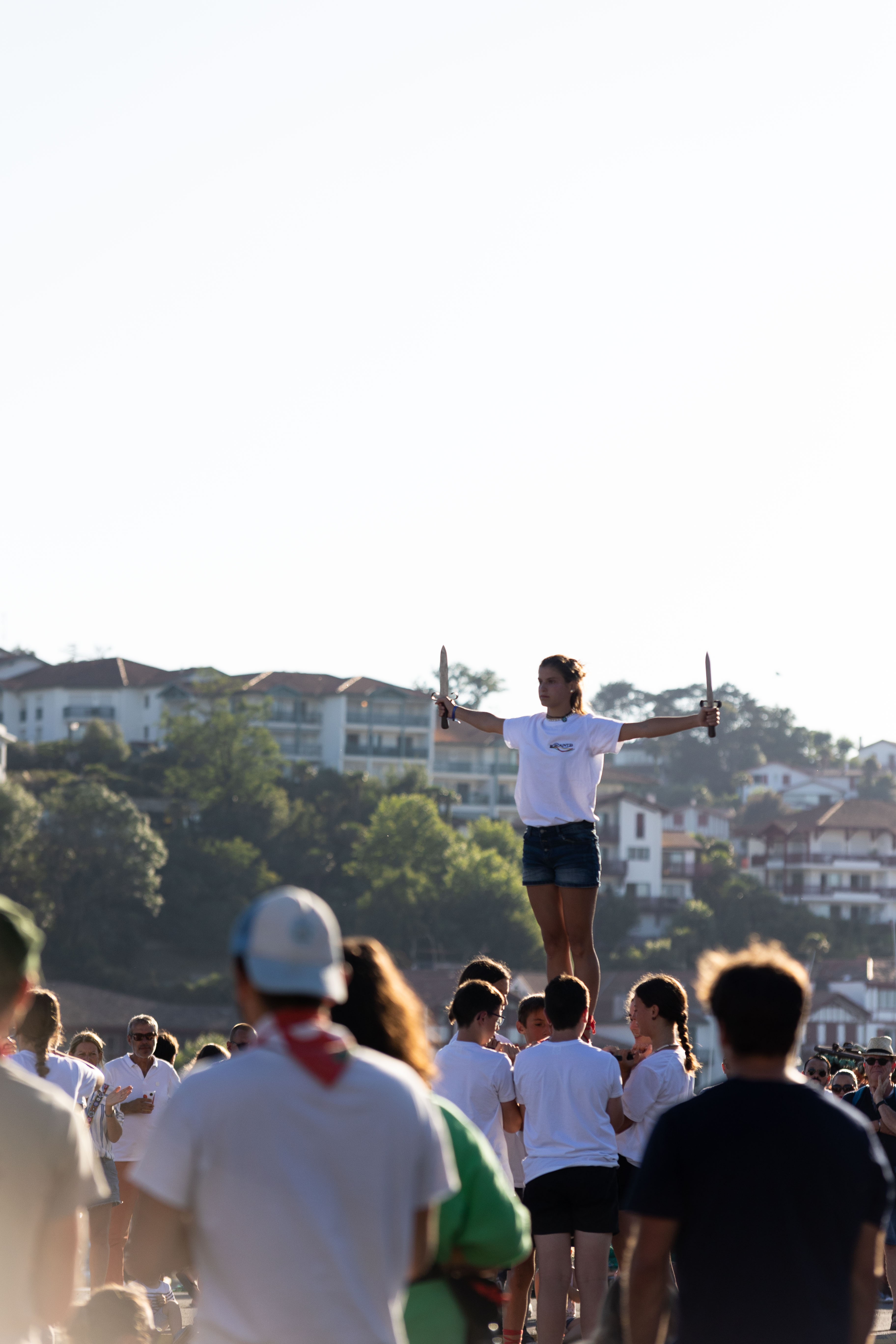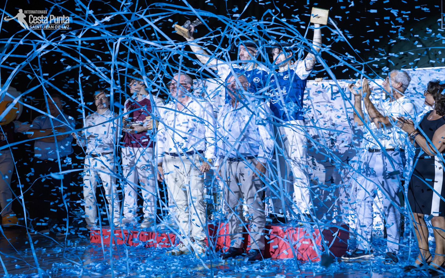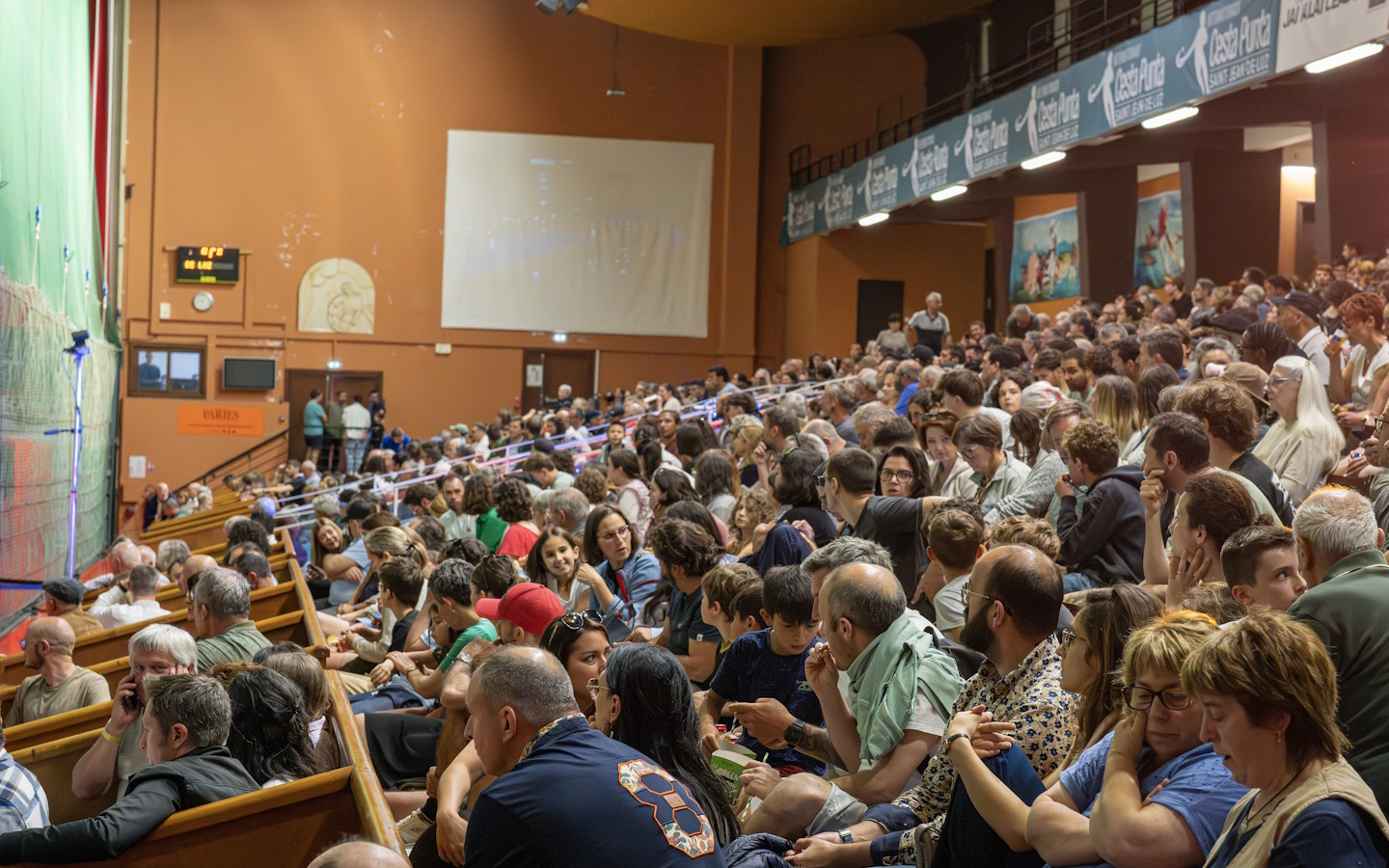 Compétition sportive de pelote basque dans une ambiance festive et familiale.