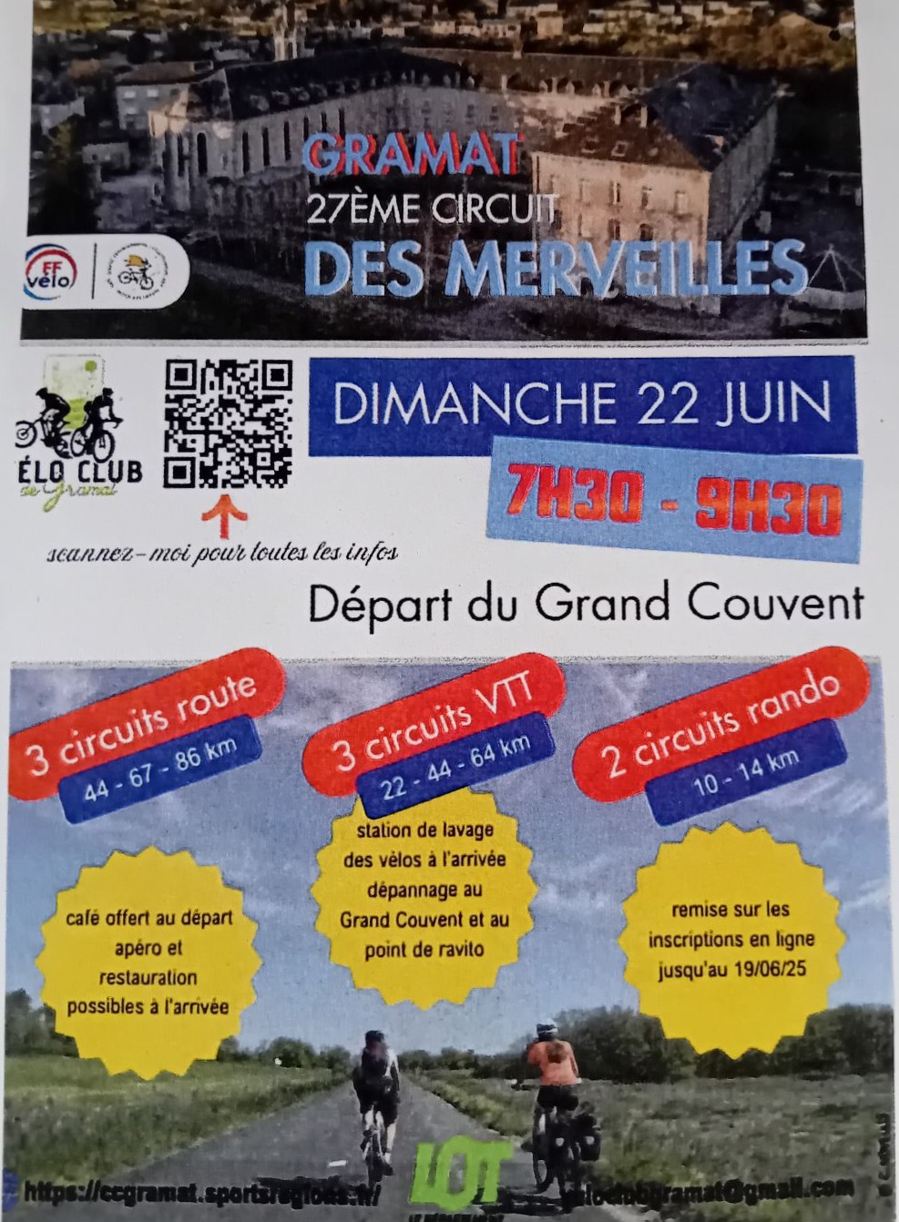 <p>Le Vélo Club de Gramat est heureux de vous accueillir pour le circuit des merveilles 2026.</p><p>Vous avez le choix entre 3 parcours de VTT, 3 parcours de vé…