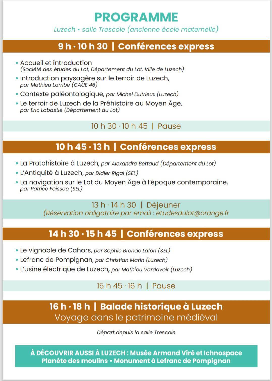 Pour découvrir l'histoire de Luzech, des conférences et des visites guidées vous sont proposées le samedi 11 octobre
